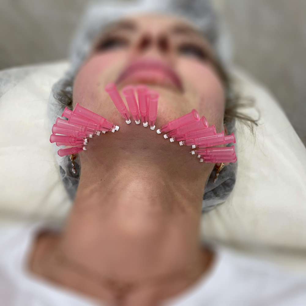 Мезотерапия - методика ухода за лицом и телом и исправления косметических недостатков. Заключается во введении специальных лекарственных препаратов непосредственно в проблемную зону, позволяет создать максимальную концентрацию вещества в нужном месте при отсутствии общего воздействия на организм. Поскольку при мезотерапии лекарственный препарат вводится непосредственно в очаг патологии, то имеет место целенаправленное воздействие лекарства на определённую зону. Микроскопическими дозами, очень тонкими и короткими иглами, поверхностно (на глубину от 1,5 до 6 мм) вводится специальный коктейль - набор различных препаратов и витаминов, подбираемый врачом - косметологом индивидуально, в зависимости от проблемы пациента. Лечебным коктейлем можно обкалывать любую область.