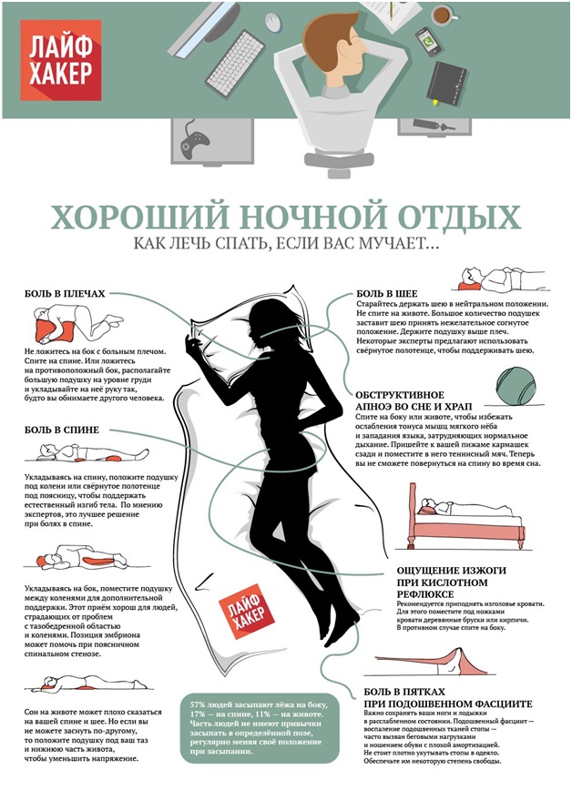 - Неправильный сон — на спине с вытянутыми ногами. Такое положение становится причиной усиленного изгиба в нижней части спины.