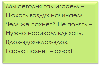 Вовлечение ребенка в игру позволит более эффективно провести дыхательную гимнастику. Человеку нужно представить, что он находится в лесу и вдруг откуда-то почувствовал запах дыма. Чтобы понять направление пожара, необходимо усиленно «нюхать воздух».