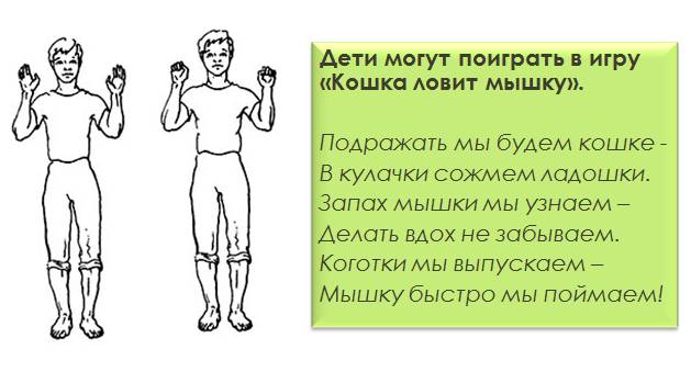Для лучшего понимания принципа упражнений и запоминания последовательности система Стрельниковой была адаптирована для дошкольников и представлена в игровой форме.