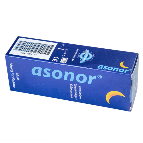 - Асонор – считается эффективным средством от храпа у мужчин. Продается в виде спрея для носа, что благодаря впрыскивающим эффектам попадает на мягкое небо.