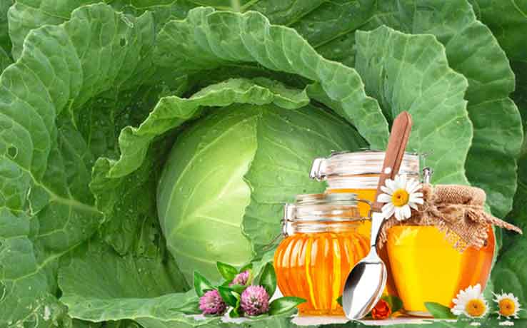 - Свежая капуста с медом обволакивает горло, нормализует дыхание.