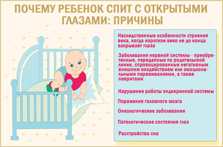 Во время сна глаза ребенка могут быть приоткрыты полностью либо слегка. Причиной этому может быть: