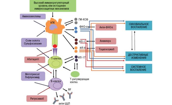 Патогенез ревматоидного артрита, т. е. механизм развития болезни, отличается многостадийностью и вовлечением большого количества биологически активных веществ.