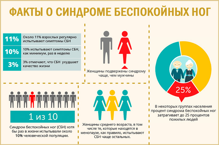 Первичный синдром беспокойных ног, по данным МКБ, составляет более половины случаев заболевания. Обычно проявляется до 30 лет и остается «спутником» человека на протяжении всей жизни. Иногда бывают многолетние периоды полной ремиссии, позволяющие пациенту «перевести дух».