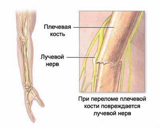 - невропатия лучевого, локтевого или срединного нерва – при травмах рук;