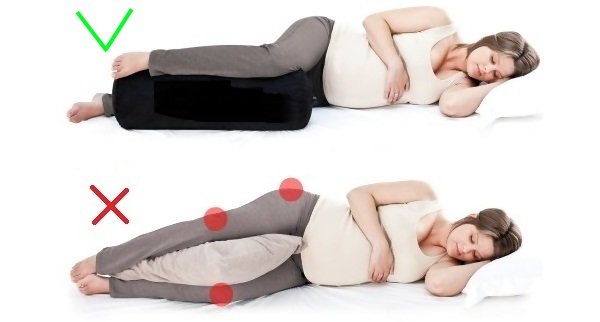 Для удобства рекомендуется взять длинную подушку или плед и расположить его между коленками (под ними). Наибольший комфорт привнесет в ваш отдых подушка для беременных, выполненная именно в той форме, которая поможет принять наиболее безопасную и удобную позу.