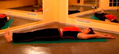 - Лежа на животе, вытяните руки вдоль туловища, приподнимите голову и ноги одновременно и постарайтесь максимально выгнуться.
