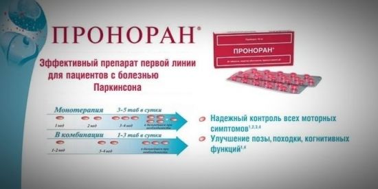 | Прамипексол (агонист d2 дофаминовых рецепторов) | Используется один и в комбинации с Левадопа. Позволяет снизить ее дозу. |