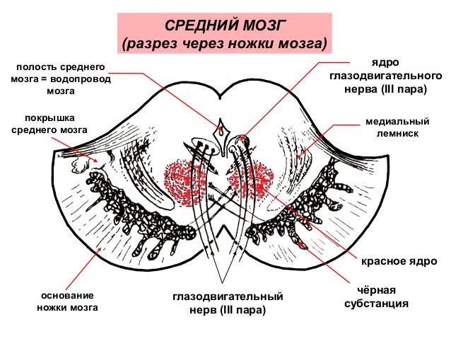 - Визуализация головного мозга (МРТ): служит для исключения церебральной ишемии, кровоизлияния, опухоли, субкортикальной сосудистой энцефалопатии, гидроцефалии (расхождение между шириной внутренних и наружных ликворных пространств, ликворный диапедез с гиперинтенсивными в режиме Т2 «шапочками» желудочков), болезни Вильсона (гиперинтенсивности в стволовых ганглиях, в частности в скорлупе, прежде всего у молодых пациентов), атипичных синдромов паркинсонизма (МСА: понтинная и мозжечковая атрофия, феномен в виде белого креста в области моста; ПНП: атрофия среднего мозга и верхней ножки мозжечка, симптом Микки-Мауса).
