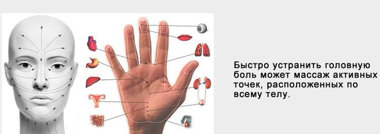 Воздействие на биологически активные точки (БАТ) позволяет избавиться от многих болезней и неприятных ощущений, и головная боль не является исключением. Точечный массаж от боли в голове является частью лечебной терапии, и проводится подушечкой указательного или среднего пальца. Основные приемы — поглаживание, растирание, вибрационное воздействие и разминание.