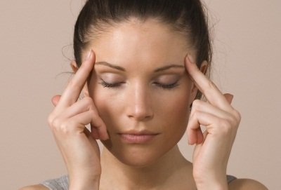 - Массирующие движения от надбровной линии к вискам;