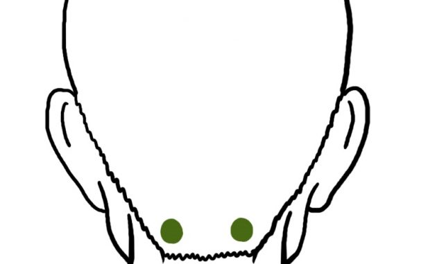 - Той-Вэй — во впадине на висках, в цуне от линии роста волос;