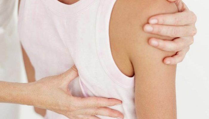 Положив руки на плечи, приподнимите локти. Считайте про себя, на счет два опустите локти. Простые движения можно выполнять сколько угодно.