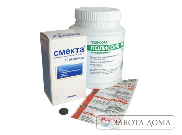 - При невозможности рвотного рефлекса заставьте выпить сорбенты: активированный уголь, Полисорб, Смекту, Атоксил.