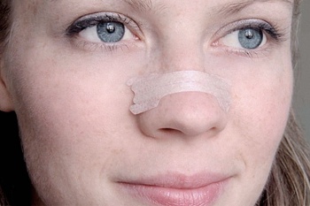 - Снять защитную полоску с пластыря и липкой стороной прикрепить на крылья носа.