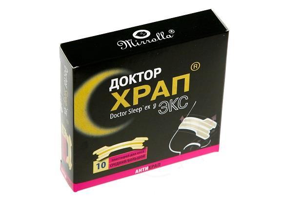 Отпускается в виде тонкой повязки на клейкой основе. Этот препарат оказывает положительное воздействие даже при ронхопатии. Однако он совершенно бесполезен при синдроме апноэ. В число достоинств Доктор Храп можно отнести следующее: