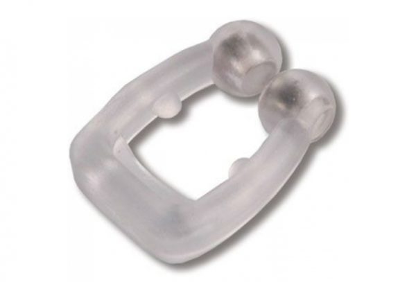 - Клипса «Антихрап». Силиконовая подкова вставляется в виде серьги в нос, воздействуя на акупунктурные точки. Рефлексотерапевтический прибор при регулярном применении устраняет храп на 90%.
