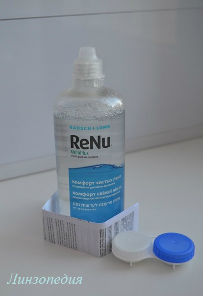 - Раствор с антимикробными свойствами для эффективной дезинфекции и очистки линз от белка и других отложений (удобнее будет купить отдельно обычный объем и отдельно небольшой, «дорожный»).