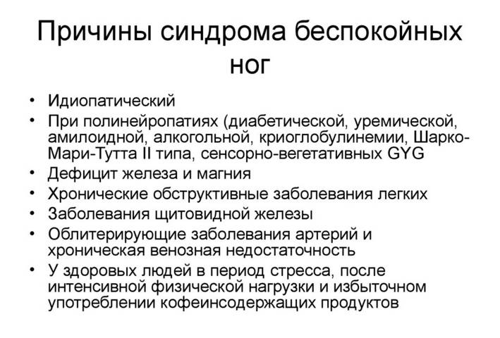 Обезвоживание, наступающие в организме в результате длительного повышения температуры тела (жар, инфекционные заболевания). Синдром беспокойных ног часто появляется при гриппе, ангине, других заболеваниях;