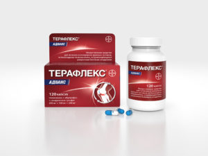 - Терафлекс Адванс – появление болей в суставах любой локализации используется в качестве обезболивающего средства. Это комплексный препарат, в котором включены глюкозамин, хондроитин и ибупрофен. Кроме обезболивания лекарство оказывает лечебное действие, за счет хондропротектора.