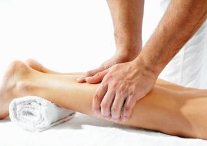 - Массаж. Снимет напряжение и усталость в ногах. Легкими массажными движениями растирают икроножные мышцы, двигаясь вверх. Кожу поглаживают, надавливают на область мышц, похлопывают и растирают круговыми движениями. Рекомендуется приобрести жирный лосьон или специальный разогревающий крем.