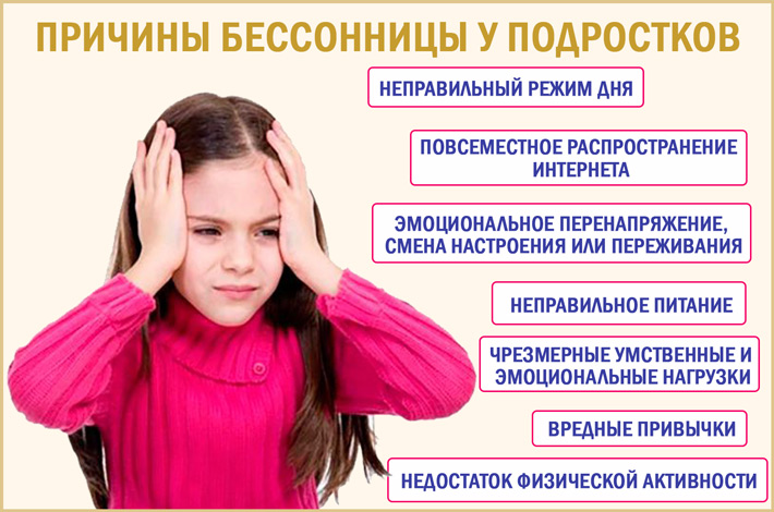 Бессонница у подростков вызвана следующими причинами:
