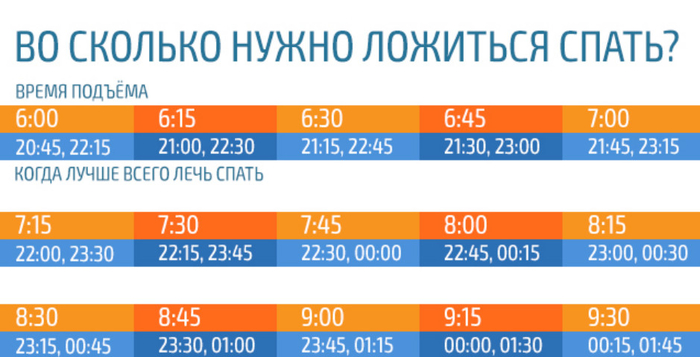 Во сколько нужно ложиться спать в зависимости от времени будильника