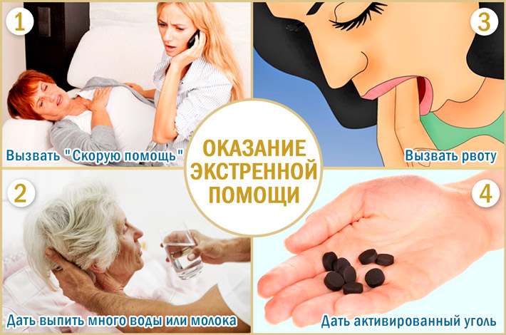Дайте пострадавшему выпить несколько стаканов чистой воды, после этого нажмите на корень языка, чтобы искусственно вызвать приступ рвоты. Такую процедуру желательно повторить пару раз. Сразу же после этого больному следует принять любой имеющийся под рукой сорбент – «Полисорб», «Смекту», активированный уголь и так далее.
