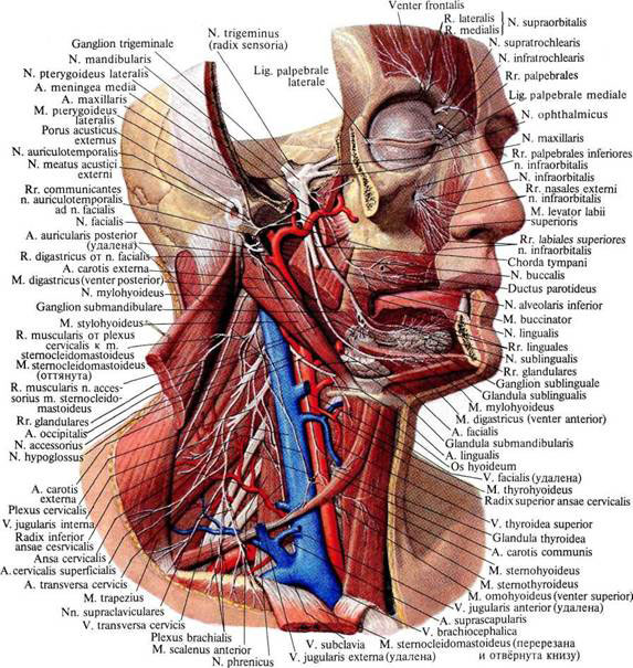 Венозный отток от сустава формируется гораздо проще – отдельные небольшие сосуды впадают в крупное сплетение, расположенное чуть ниже и спереди от сочленения. Затем из него выходит лишь одно крупное образование – занижнечелюстная вена.
