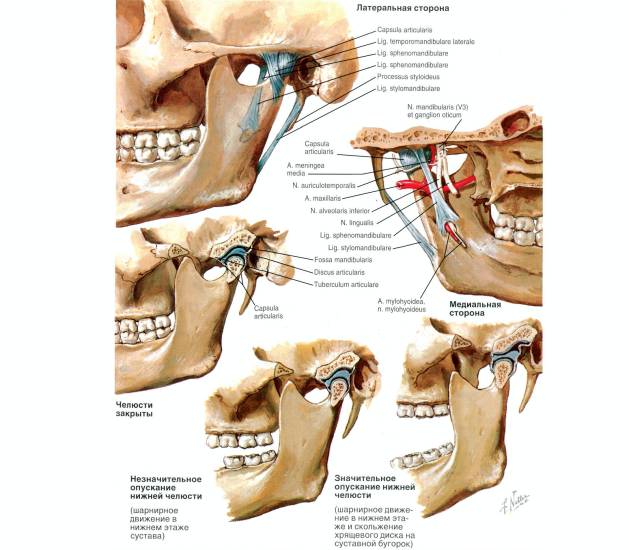 - Косвенно, особенно в нижних и задних отделах сочленение получает кровоснабжение из веточек отдельных сосудов – глубокой ушной, передней барабанной, восходящей глоточной и верхнечелюстной артерии.