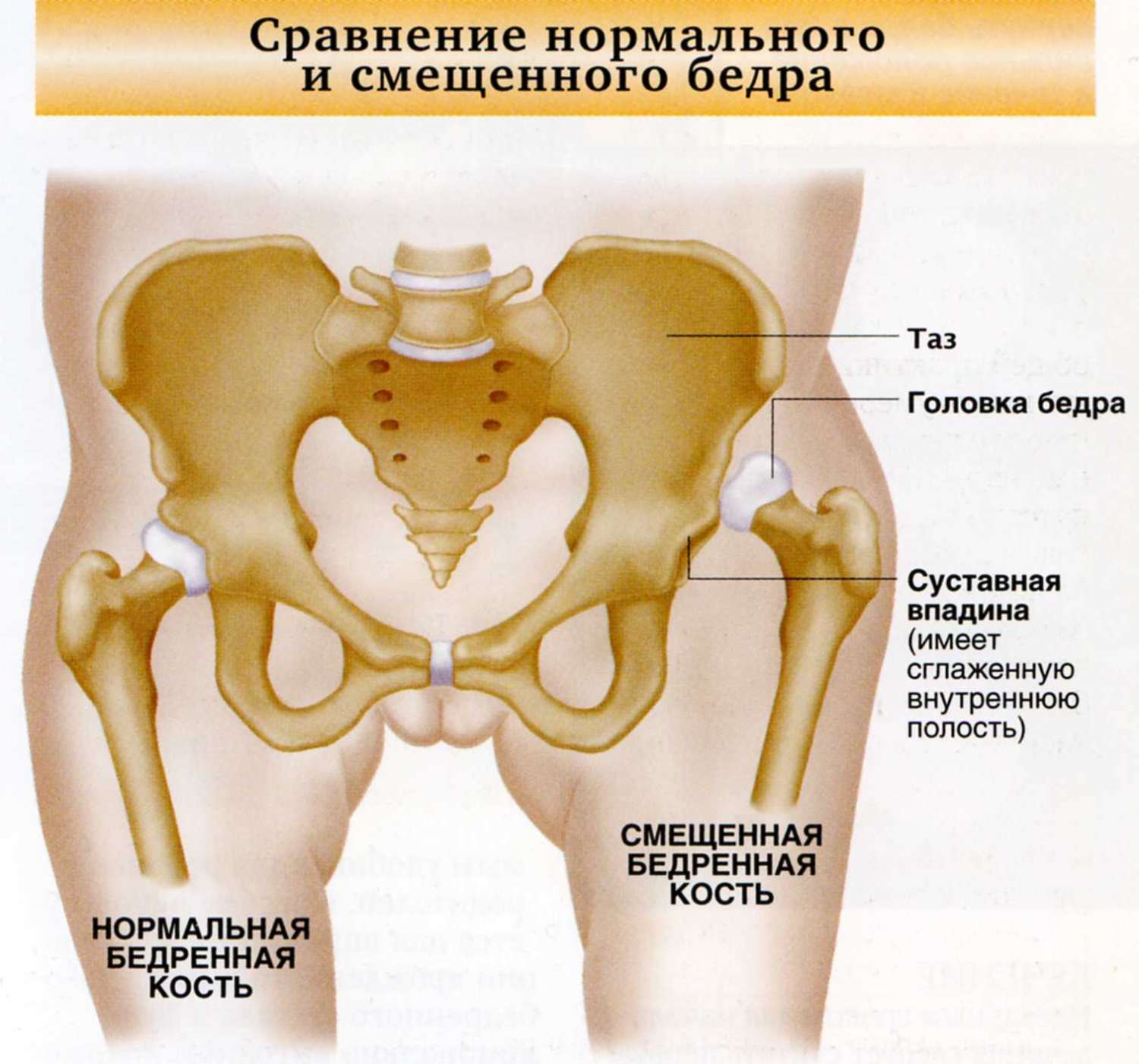 - Головка и шейка бедренной кости при ощупывании определяются в области мягких тканей, окружающих таз. В норме они не должны находиться таким образом.